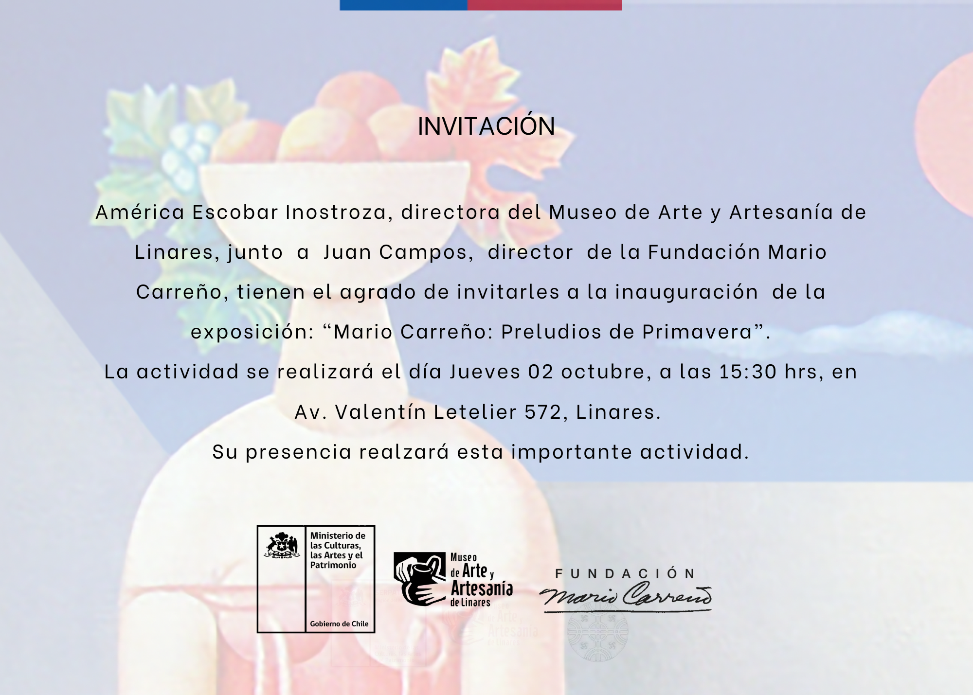 Para la Fundación Mario Carreño, la equilibrada mezcla de tradición y modernidad que tiene el Museo de Arte y Artesanía de Linares, les ha parecido por demás, atractiva para exponer un arte que une a lo clásico la audacia de la innovación. Estos motivos son lo suficientemente inspiradores para atreverse en una experiencia que será un aporte al conocimiento del arte nacional y universal en un territorio y una ciudad importante en la historia de nuestro país.